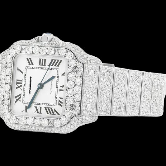 ICED OUT SANTOS 35MM MEDIUM DIAMOND WATCH 15.5CT.